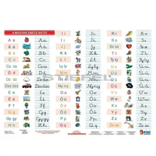 Az összes betűt (kis- és nagybetűket, ékezeteket) bemutató új tablónk készítésekor több, mint 1000 gyermeket kérdeztünk meg arról, hogy az egyes betűkről mi jut eszükbe. A rajzokkal illusztrált kiadvány hátán a vonal-elemek és az írott betűk gyakorlására van lehetőség. A tanulói munkalap írható-letörölhető fóliabevonattal készül!