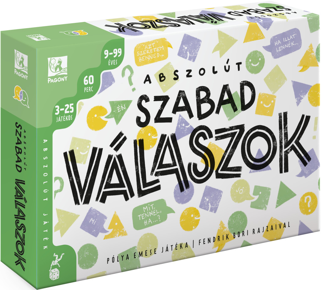 Üljetek körbe, helyezzétek magatokat kényelembe, mert most csak egymásra és magatokra kell figyelnetek! Az Abszolút szabad válaszok kártyapaklija több mint száz érdekes, vicces, elgondolkodtató kérdést rejt, amelyek segítenek eltöprengeni fontos témákon, azon, hogy mivé változnátok át, ha tehetnétek, mi jut eszetekbe arról, hogy susmus, vagy éppen ki tud közületek a legkevésbé füllenteni! A válaszok közt időnként pedig közös és egyéni küldetések, mókás csoportfeladatok bukkannak fel.