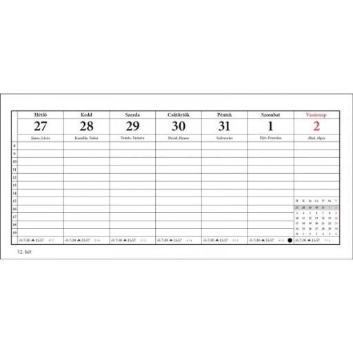 Fehér lapos, perforált asztali naptár. Naptárhát nélkül kapható.