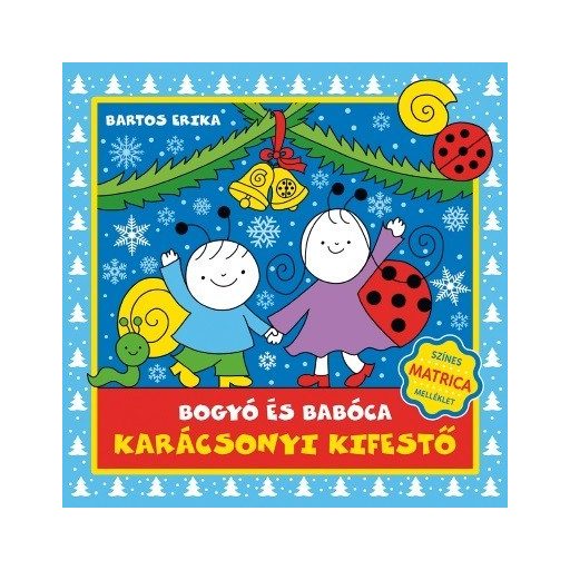Színezők és fejtörők mellett most matrica is található Bogyó és Babóca, a csigafiú és a katicalány karácsonyi kifestőjében.