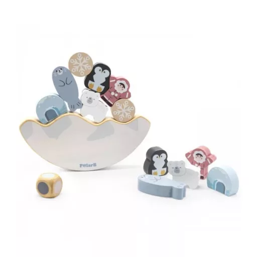 A készlet 12 darab különböző állatfigurát, egy kiegyensúlyozó táblát és egy kockát tartalmaz, amelyek mind a gyermek kis kezéhez igazodnak, biztosítva ezzel a könnyű és biztonságos használatot.
