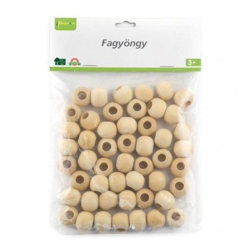 Fából készült natúr fagyöngyök. Kiválóan fejleszti a kézügyességet és a kreativitást. Alkalmas kislányoknak és kisfiúknak is egyaránt. A remek és szórakoztató tevékenység során fejlődik a gyermekek finommotoros készsége, aminek nagy hasznát veszik az első betűk leírásánál. Hozzájárul a számok megtanulásához és a számolás gyakorlásához is. Óvodás kortól ajánljuk a terméket otthoni vagy intézményben való használatra. Kreatív üzletek elengedhetetlen terméke, ünnepi díszek elengedhetetlen kelléke, például angyalka fejet tudunk belőle készíteni.
