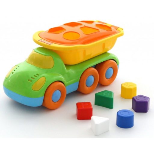 Vidám, színes autó a legkisebbek számára. A játékhoz formák is tartoznak, melyeket az autó tetején kell beilleszteni a megfelelő helyre. Ha ez sikerült, akkor az autóval szállítani is lehet az elemeket. Játék közben nagyszerűen fejlődik a finommotorikus készség, valamint a szín- és formafelismerés.