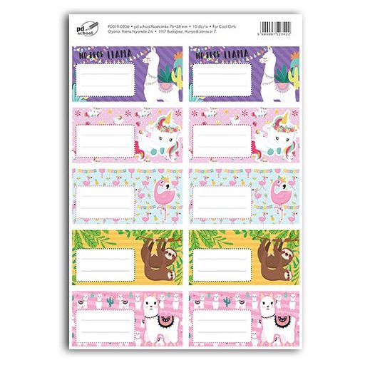 Egy lapon 10 címke található, egy címke mérete 7,6 x 3,8 cm.