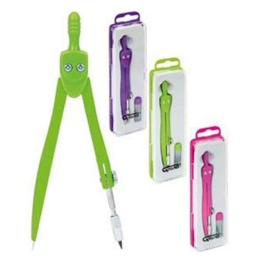 Fémből készült, hagyományos iskolai körző műanyag dobozban, körzőbéllel.
