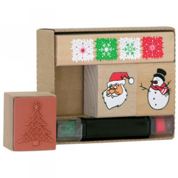 3 darabos Bélyegzőkészlet karácsonyi motívummal + 1 db zöld és piros nyomdapárnával kreatív felhasználásra