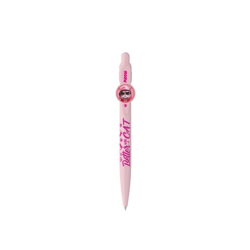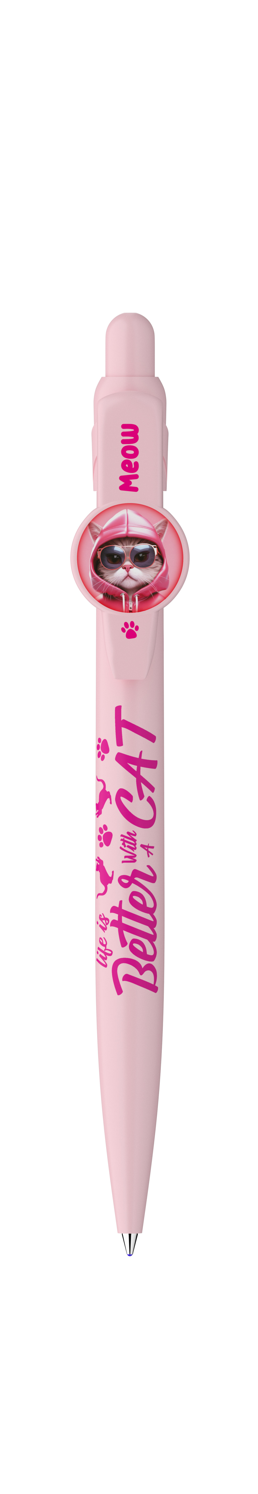 Cicás, díszített nyomógombos mechanikával működő golyóstoll 0,8 mm-es kék színű golyósbetéttel.