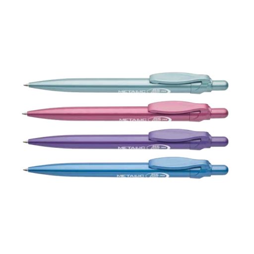 Nyomógombos mechanikával működő golyóstoll 0,8 mm-es kék színű golyósbetéttel.