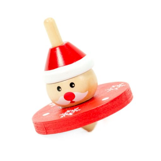 Élénk színű fa pörgettyű helyes kis mikulással díszítve, amely érdekessé teszi ezt az egyszerű ügyességi játékot. A játék bepörgetésének gyakorlásával  fejlődik a koncentrációs készség, a szem-kéz koordináció és finommotorikus képesség.