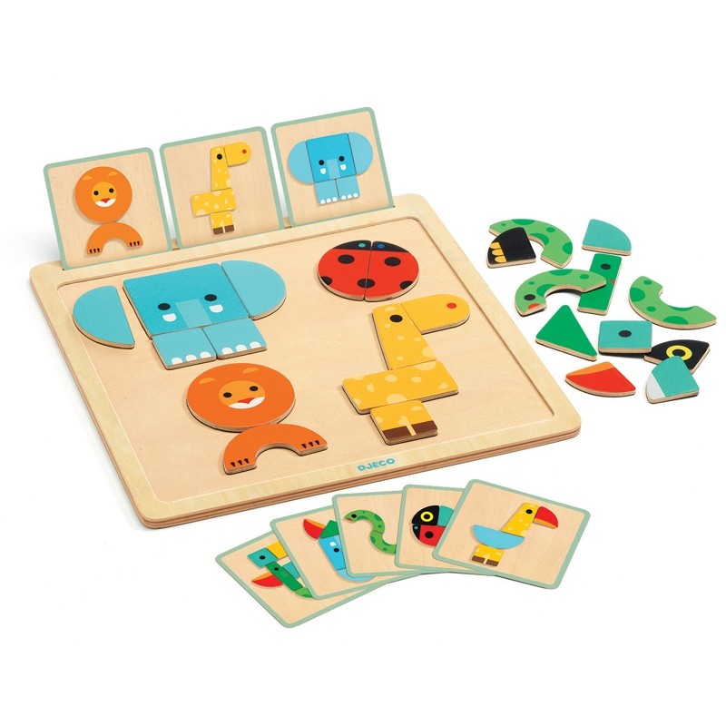 Zöldfülű elefánt, kék hasú kigyó biztosan születik majd ott, ahol ezzel a játékkal játszanak. A motorikus készségek fejlesztésén túl, vidám és érdekes gondolkodást serkentő jó játék. A figura részek mágneses lapocskák, amelyek pontosan és biztosan illeszkednek egymáshoz, abban az esetben, ha összetartoznak. A színek segítik eldönteni, melyik hívókártya állat figurájának része egy-egy lapocska.