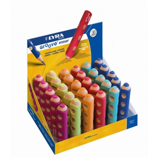 Színes, LYRA Groove ceruza alakú radír. Kényelmesen elhelyezhető tolltartóban, biztonságos, ftalát- és PVC mentes.