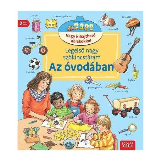 Az oviban mindennap történik valami izgalmas. A gyerekek együtt játszanak és kézműveskednek, közösen készítik a reggelit, gondozzák a zöldségeket a kiskertben, tornáznak a tornateremben, kirándulnak az erdőben. Megünneplik a születésnapokat, a farsangot, az ősz beköszöntét. A nagy, kihajtható ablakoknak és a színes illusztrációknak köszönhetően a kicsik játszva tanulnak meg rengeteg új szót és kifejezést.