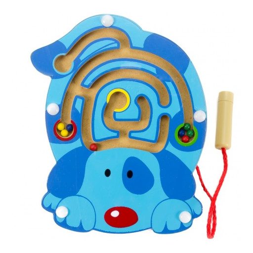 Ez a játék a kitartásra ösztönzi a gyerekeket. Ügyességi játék. A mágnes segítségével kell vezetni a golyókat a pályán.