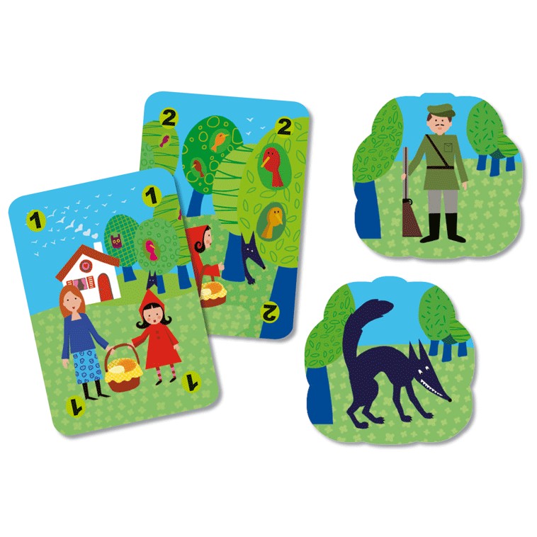 Grimm testvérek meséje mindenki számára ismert. Nincs is már olyan műfaj talán, amelyikben ne került volna feldolgozásra. Mégis talán ez az átdolgozás, ez a játék az egyetlen, ahol még azelőtt megvédheti a vadász Piroskát a farkastól, hogy elkapta volna a farkas. Az eredeti mese mondanivalója: "Járt utat a járatlanért el ne hagyd!" A meseírók korában a nevelés aktív része volt a tiltás, ami esetenként elképesztő fenyegetésekről, elijesztésekről szólt. A mai időkben már más módszerekkel nevelnek a szülők, mégis hasznát vehetik ennek a kártyajátéknak, amikor megtanítják gyermekeiknek, hogy ne legyenek megtéveszthetők, ne menjenek el idegennel semmiféle igéretre.
