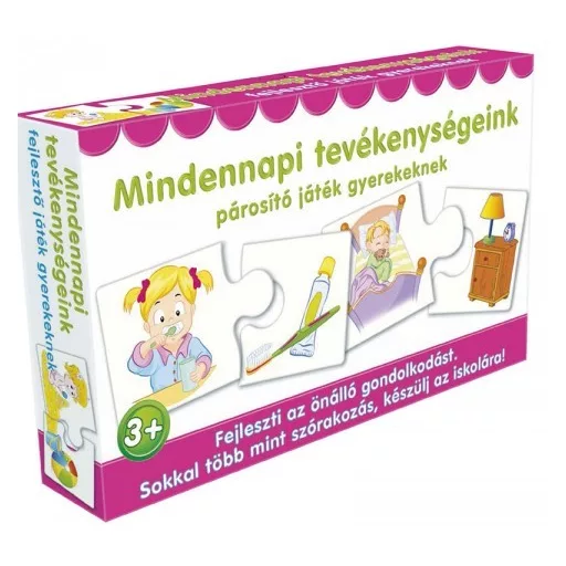 A kicsik gondolkodását mozgósító játék, hiszen az összetartozó képek megtalálása már nem mindig egyértelmű. Előfordulhat, hogy a párok összetartozásának oka magyarázatra is szorul. A játék 12 pár képet tartalmaz.