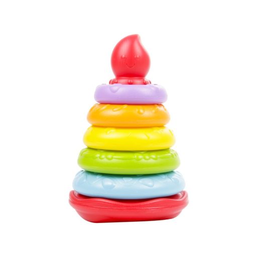 Rakd össze egy torta emeleteit, és rakj a tetejére gyertyát! Műanyagból készült színes torony, amire a különböző színű karikákat kell ráhúzni.