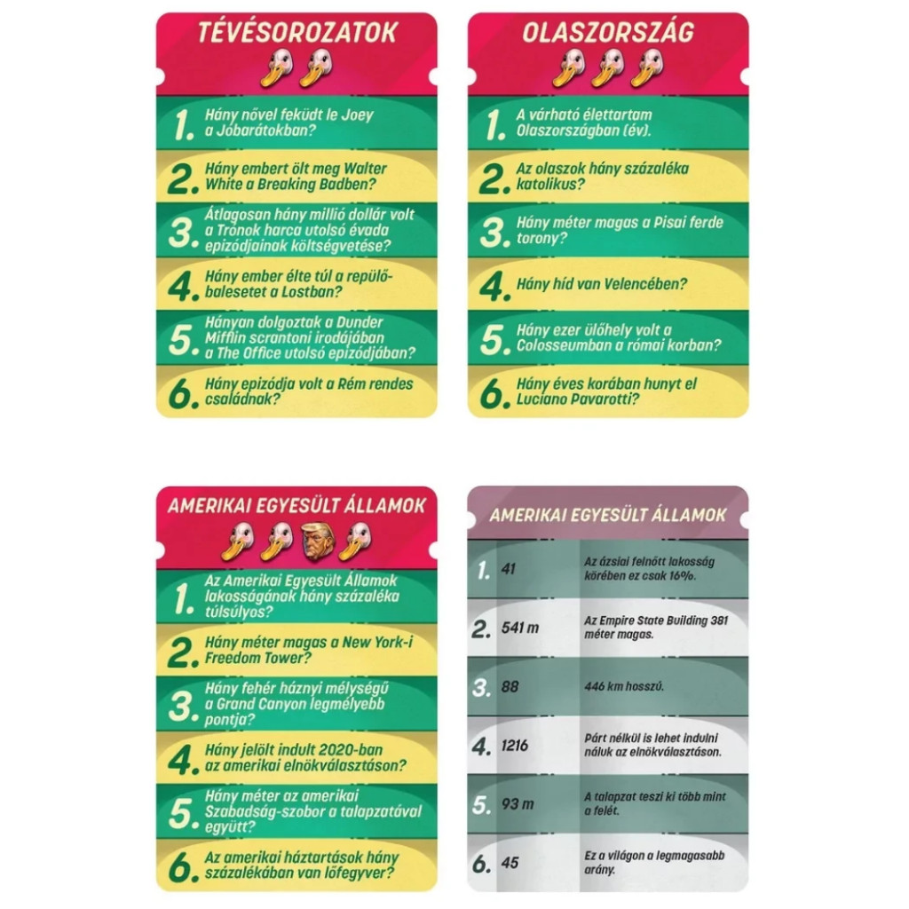 Vajon mersz kockáztatni, vagy inkább biztosra mész? Olvasol a többiek arcából, vagy vakmerően blöffölsz? Csak egy tippet kell adnod... de az vajon elég óvatos? Ne feledd: itt nemcsak a tudás számít, hanem a taktika – és az sem árt, ha nem száll el veled a ló (vagy a liba)!