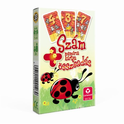 A doboz 33 lapot tartalmaz, melyet különböző számok találhatóak. 3 kártya ad ki egy matematikai egyenlet, a helyes megoldást a szín és minta is elősegíti.