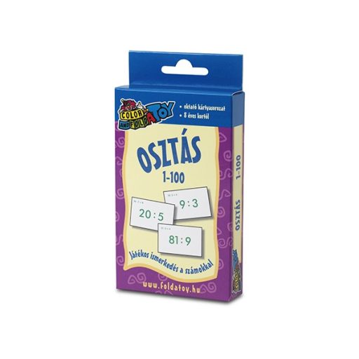 A kártyák mindkét oldalán egy osztás művelet szerepel, a helyes megoldást pedig ellenőrizhetjük a felső sarokban, ami felénk esik így a gyermekünk nem láthatja.