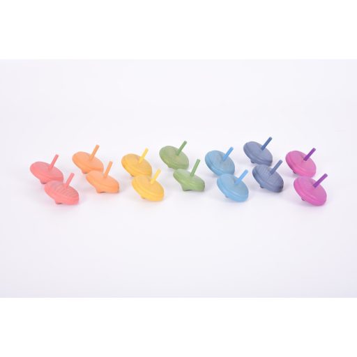 Gyönyörű, sima tömör bükkfából készült pörgettyűk a szivárvány hét színében.