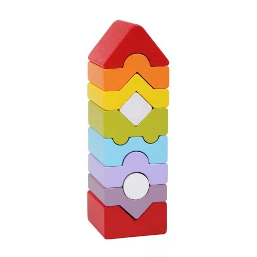 Tedd a fa toronyépítő készlet elemeit egymásra, és törj a magasba! Az elemeket többféleképpen egymásra lehet tenni, így különleges tornyokat lehet építeni, ezzel fejlesztve a kézügyességet és a kreativitást!
