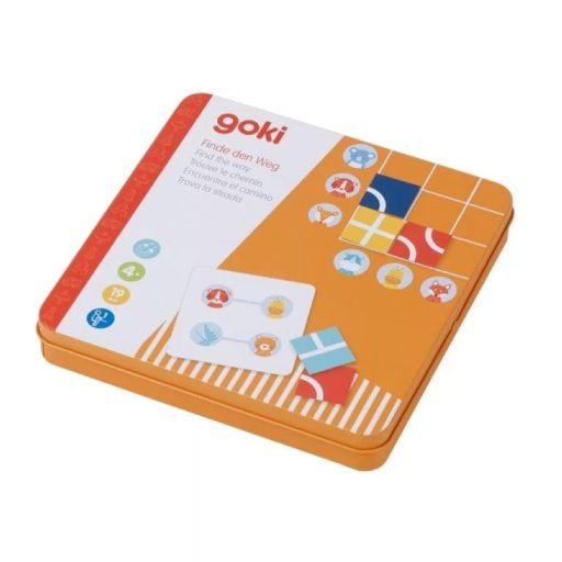 A Goki Találd meg az ösvényt! játéka utazáshoz tökéletesen használható, mágneses kivitelben kapható. A praktikus fém tárolódobozban bárhová magunkkal vihetjük, az elemek nem fognak kiesni, hiszen mágneses felületüknek köszönhetően odatapadnak a doboz belső felére. Kis méretének köszönhetően bárhol elővehetjük és izgalmas játékot játszhatunk.