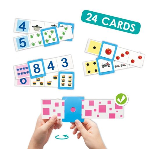 A feladatkártyán a húzható jelölő négyzet segítségével párosíthatjuk tízes számkörben a számokat a mennyiségekkel. A hátoldalon önellenőrzési lehetőség van.Készlet tartalma:24 db 8x24 cm-es szám- és mennyiség feladatkártya 1-10-igKor: 5+