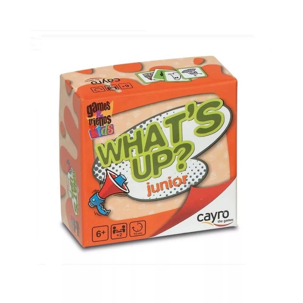 A WHAT'S UP egy izgalmas játék, melyben különös történeteket fogtok kitalálni közösen. A játékot az akciókártyák teszik majd még izgalmasabbá, amik miatt néha mutogatva kell majd folytatnod a sztorit, esetleg párbajra kell majd hívnod egy másik játékost - néha pedig Te magad is felbukkansz majd a történetben!